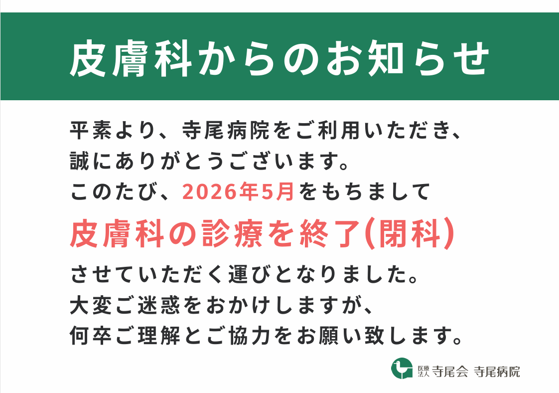 閉科(皮膚科)のお知らせ | 医療法人 寺尾会 寺尾病院